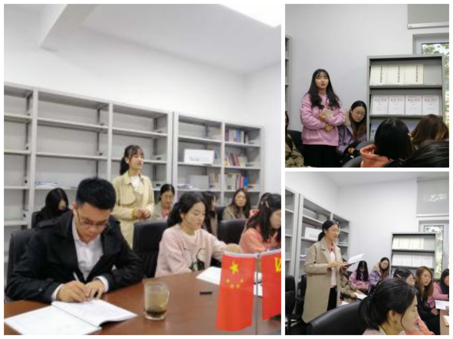 老师发言完毕后,学生党员代表也依次进行了发言。李楚楚同学在谈自身感受时讲到,每个人应该怀着一颗爱家乡爱祖国的心,做好本职工作同时,努力为家乡、为祖国尽自己的一份力。张翠丽同学通过电影中的故事,认为有能力有品行有责任又甘于奉献的人值得我们学习,影片让她深刻理解了“一个人的价值在于责任和贡献”。而梁闪闪同学则结合自己的成长经历,讲述了乡村教育对自己的影响,并且表达了自身对党和国家的感激之情。