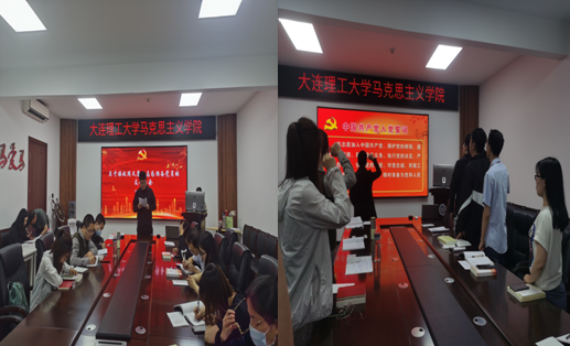全体党员唱完《国际歌》之后,秦雪同志从“为什么要学党史?”、“党史学什么?”、“怎样学习党史?”三个方面做了题为《学好百年党史,砥砺初心使命--学习习近平总书记在党史教育动员大会上的重要讲话精神》的专题党课,从历史逻辑、理论逻辑与现实逻辑分别阐明了党史学习的重大意义、主要内容和实践路径。白冰同志作为本次主题党日活动的领学人,为在场党员细致讲解了《中国共产党简史》第五章、第六章内容,并与各位党员分享了自己学习党史的经历和体会,鼓励大家要带着问题意识去研读党史,牢固树立正确的党史观。王宁、崔柏慧、张帅、周文康等同志就白冰副书记所讲内容展开讨论,并结合自身经验分享了对这两章内容的见解。